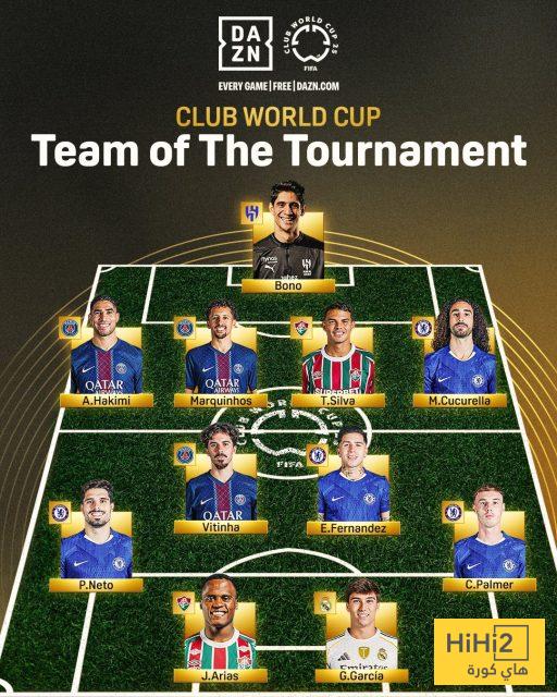 هاي كورة – كشفت منصة DAZN عن التشكيلة المثالية لبطولة كأس العالم للأندية 2025، التي توّج بها تشيلسي بعد فوزه الكبير على باريس سان جيرمان بثلاثية نظيفة في المباراة النهائية.