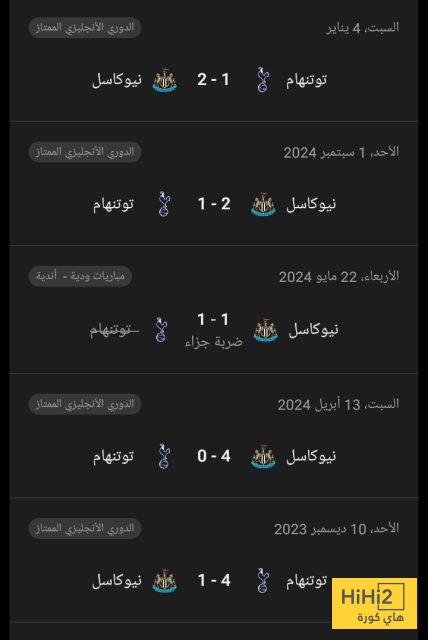 إليكم نتائج أخر 5 مباريات جمعت نيوكاسل و توتنهام: