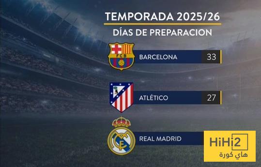 يليه اتلتيكو مدريد برصيد 27 يوما بينما ريال مدريد هو الاقل فترة اعداد من بين الاندية الثلاثة حيث حصل على 15 يوما فقط .