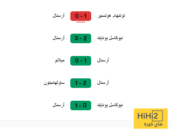 فيما يلي نتائج أخر 5 مباريات للجانرز قبل مواجهة فياريال: