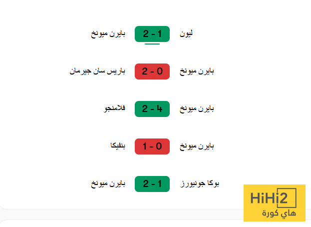 فيما يلي نتائج أخر 5 مباريات للفريق البافاري قبل ملاقاة توتنهام: