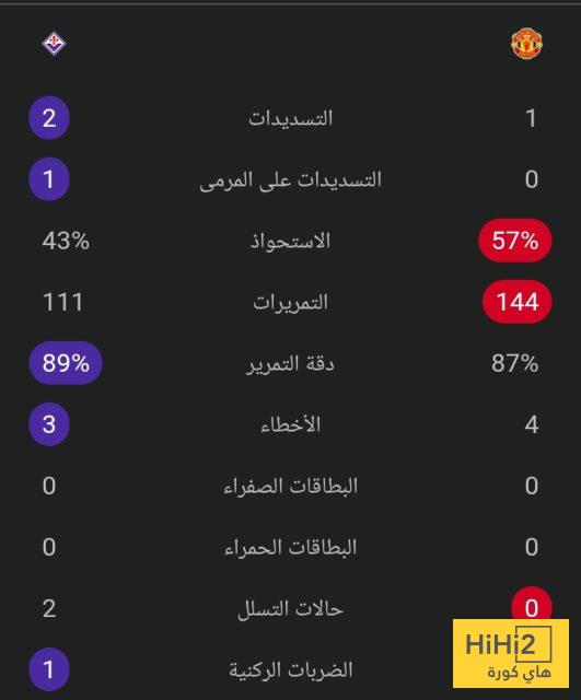 إحصائيات منتصف الشوط الأول بين مانشستر يونايتد و فيورنتينا