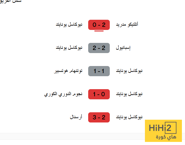 فيما يلي نتائج نيوكاسل في أخر 5 مباريات قبل ملاقاة أستون فيلا: