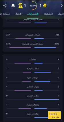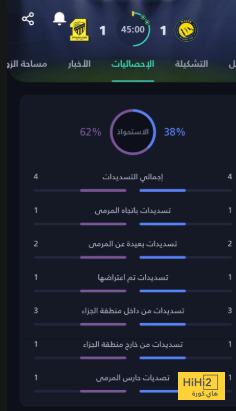 إحصائيات الشوط الأول: النصر والاتحاد