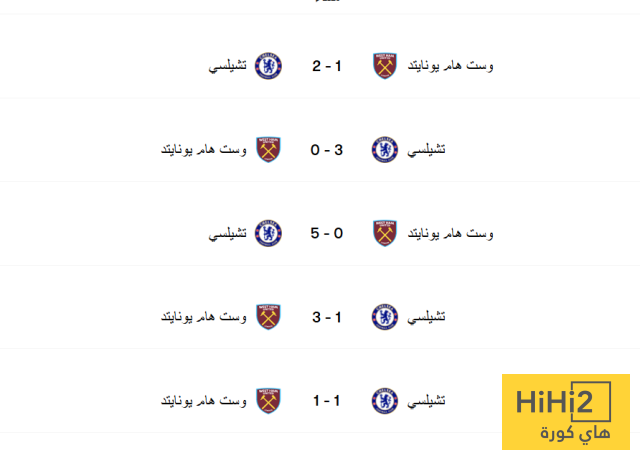نتائج أخر 5 مباريات جمعت بين تشيلسي ووست هام