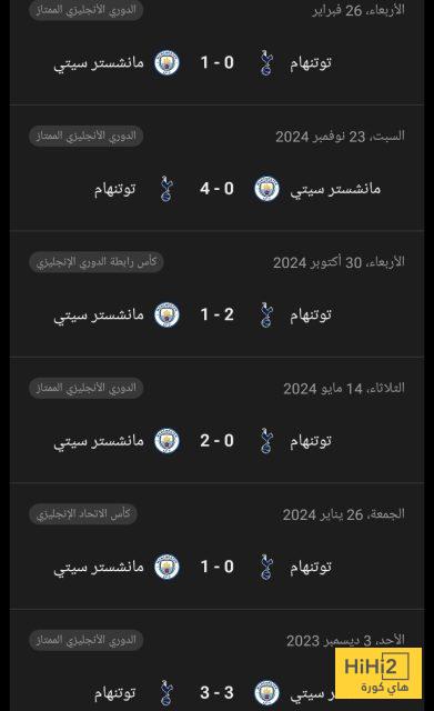 نتائج أخر 6 مباريات جمعت توتنهام و مانشستر سيتي