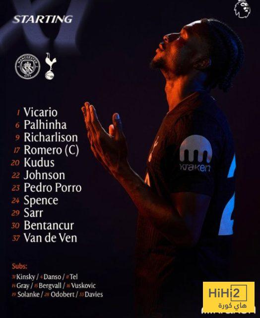 تشكيلة توتنهام الرسمية أمام مانشستر سيتي