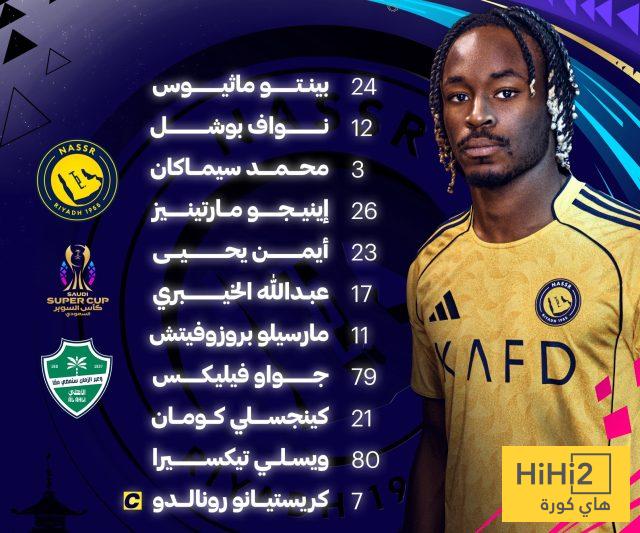 تشكيلة النصر الرسمية لمواجهة الأهلي في نهائي السوبر