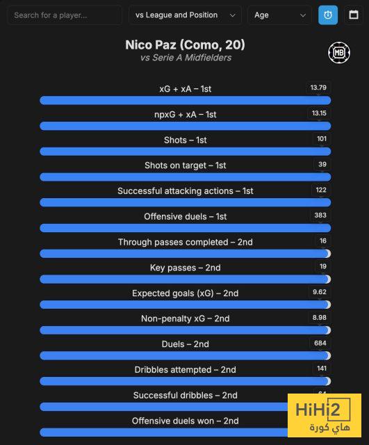 هذه الأرقام تعكس بوضوح التطور الكبير في أداء نيكو باز وقدرته على المنافسة في واحد من أصعب الدوريات في العالم.