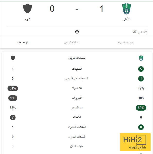 إحصائيات الشوط الأول تكشف مفاجأة بين الأهلي ونيوم