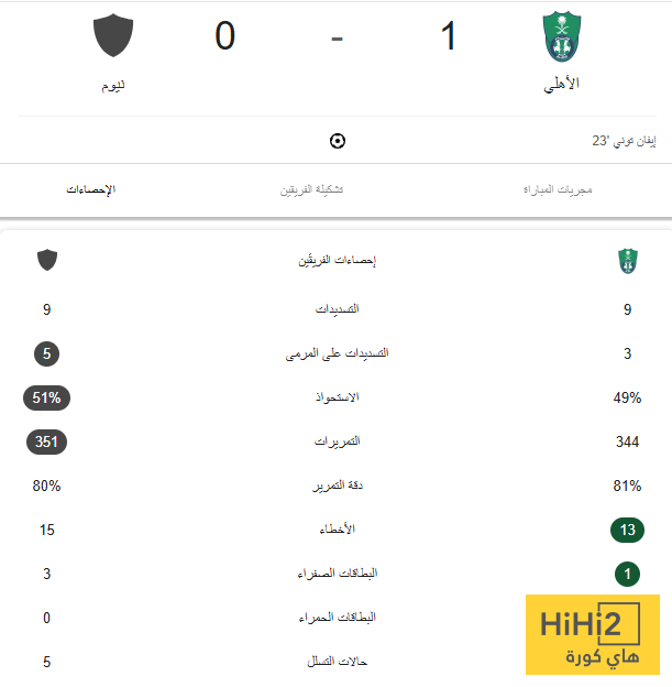 رغم التفوق بالأرقام.. نيوم يسقط أمام الأهلي