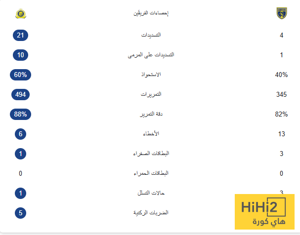 من يتفوق في إحصائيات مباراة النصر والتعاون؟