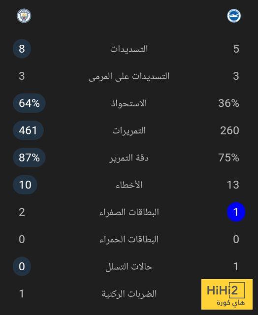 إليكم احصائيات 75 دقيقة بين مانشستر سيتي و برايتون: