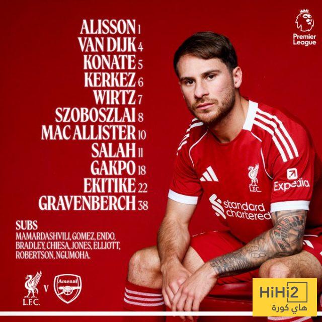 تشكيلة ليفربول الرسمية ضد أرسنال