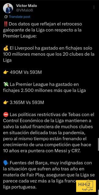 مصادر في برشلونة، أعربت عن غضبها الشديد من الوضع الذي يواجهونه عامًا بعد عام في ما يخص اللعب النظيف المالي (Fair Play)، مؤكدة أن الدوري الإسباني أصبح يشبه بشكل متزايد الدوري الفرنسي أو البرتغالي”.