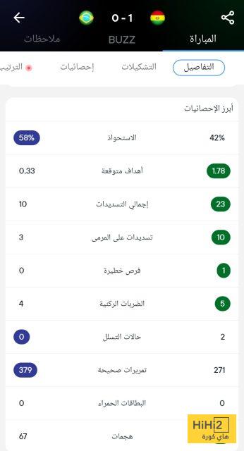 وجاءت إحصائيات مباراة البرازيل وبوليفيا كالتالي: