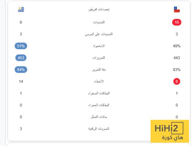 إحصائيات مباراة تشيلي وأوروغواي – هاي كورة