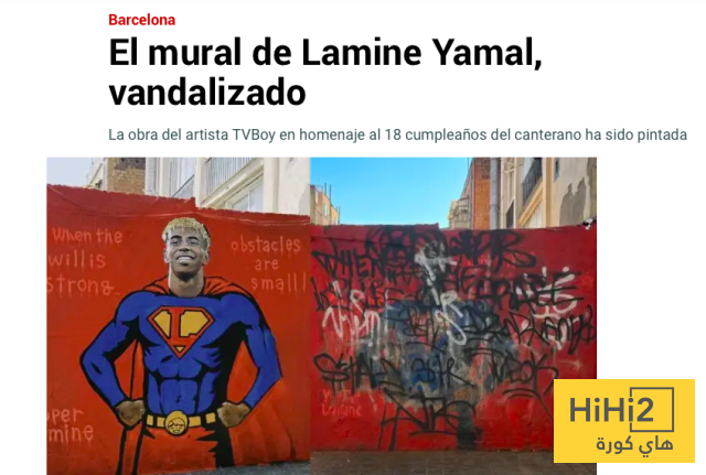 هاي كورة : احد الرسومات الجدارية في قلب برشلونة التي أنشأها بعض المحبين للفتى الذهبي لامين يامال في وقت سابق واستمرت لعدة اشهر انتهت هذا اليوم على يد اشخاص مجهولين حيث تم طمسها بشكل كامل وكتبت العديد من الانتقادات والعبارات ضد اللاعب.