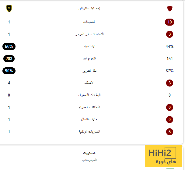 إحصائيات الشوط الأول بين الاتحاد والوحدة