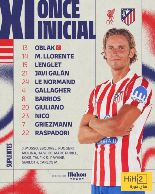 تشكيلة اتلتيكو مدريد الرسمية ضد ليفربول