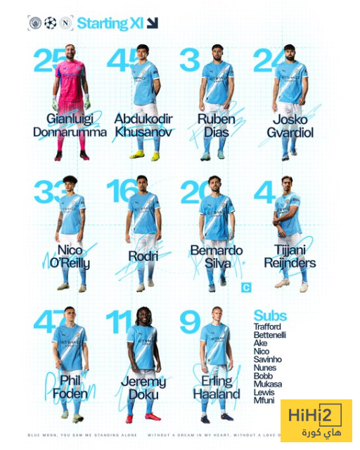 تشكيلة مانشستر سيتي الرسمية ضد نابولي في دوري ابطال اوروبا