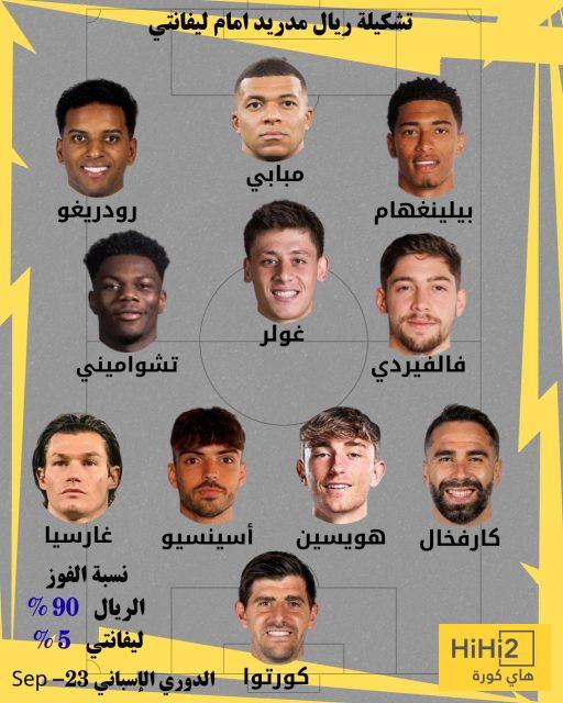 هاي كورة – كشف موقع هاي كورة عن تشكيلة ريال مدريد المتوقعة لمواجهة ليفانتي في الجولة السادسة من الليغا حيث سيلتقي الفريقان مساء اليوم الثلاثاء وفق التوقيت المدرج في جداول الموقع لكل دولة حول العالم.