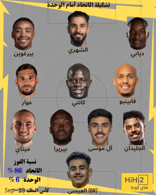هاي كورة – كشف موقع هاي كورة عن تشكيلة الاتحاد المتوقعة لمواجهة فريق الوحدة في دور الـ32 من كأس خادم الحرمين الشريفين، حيث سيلتقي الفريقان مساء اليوم الثلاثاء وفق التوقيت المدرج في جداول الموقع لكل دولة حول العالم.