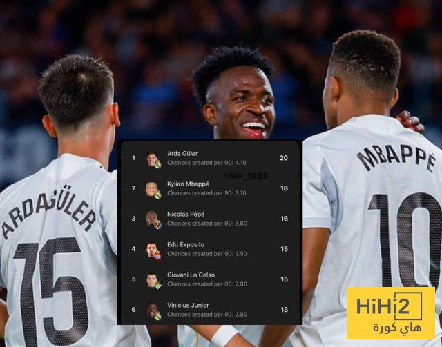 وفي المركز الثاني جاء النجم الفرنسي كيليان مبابي بـ 18 فرصة (3.10 لكل 90 دقيقة)، بينما حل البرازيلي فينيسيوس جونيور سادسًا بـ 13 فرصة (2.80 لكل 90 دقيقة).
