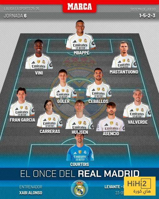 هاي كورة – دخل ريال مدريد مواجهة ليفانتي بتشكيلة غير مألوفة تمامًا وضعها المدرب تشابي ألونسو، حيث لم يعتمد على أي ظهير أيمن صريح، واكتفى بوجود ظهيرين أيسر هما فران غارسيا وكاريراس.