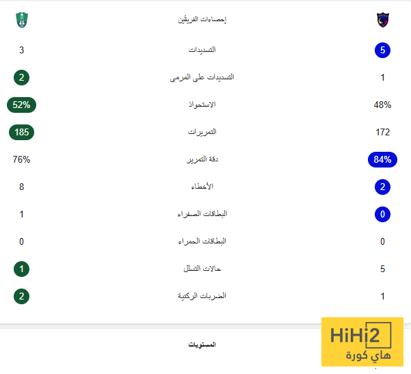 إحصائيات الشوط الأول بين الأهلي والحزم