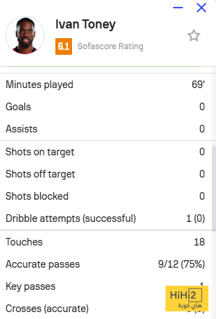 هاي كورة : حصل توني على أقل تقييم في تشكيلة النادي الأهلي أمام الحزم، عقب الأداء المتواضع في المباراة التي أُقيمت اليوم الجمعة، وانتهت بفوز الراقي بهدفين دون رد، ضمن منافسات دوري روشن السعودي لموسم 2025–2026.