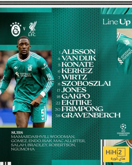 تشكيلة ليفربول الرسمية ضد غلطة سراي في دوري الابطال
