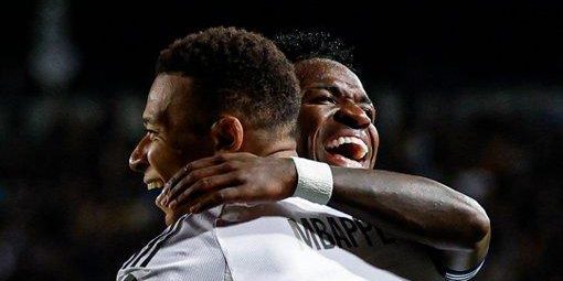 سجل أهداف ريال مدريد مبابي هاتريك و كامافينغا و دياز في الدقائق 93،83،73،52،25، من عمر المباراة.