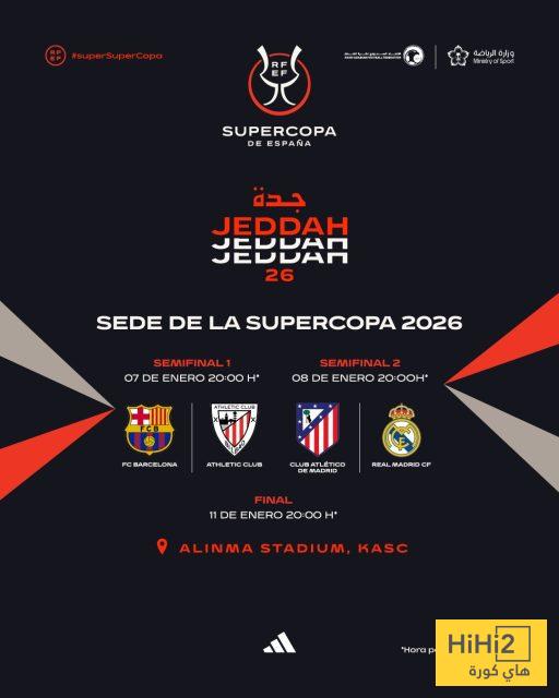 هاي كورة – أعلن الاتحاد الإسباني لكرة القدم اليوم عن المواعيد الرسمية لمباريات بطولة كأس السوبر الإسباني، التي ستُقام مجددًا في المملكة العربية السعودية، وتحديدًا على ملعب “الإنماء” الجديد.