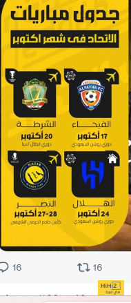 الاتحاد يترقّب مواجهات نارية في أكتوبر.. الكلاسيكو في الموعد بقلممجدي عبد العال عبد العال Posted on أكتوبر 9, 2025 شارك هذه المقالة مع أصدقائك!فايس بوك تويترWhatsapp هاي كورة : يخوض نادي الاتحاد سلسلة من المباريات القوية خلال شهر أكتوبر، في جدول مزدحم ينتظر خلاله تحديات كبيرة، ويُعد أبرز هذه المواجهات هو الكلاسيكو المرتقب أمام الهلال، والذي يمثل اختبارًا حقيقيًا لقدرات الفريق تحت قيادة سيرجيو كونسيساو. إليكم المباريات: