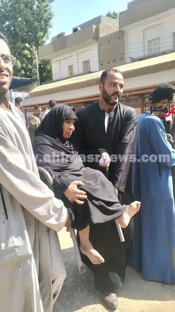 شايلينها على ايديهم.. مواطنين يحملون مسنة للإدلاء بصوتها فى انتخابات النواب بالأقصر