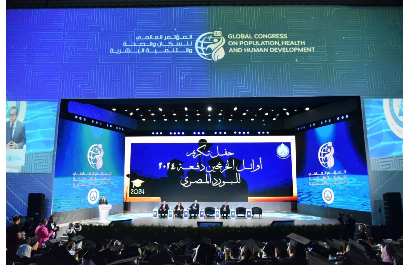 شهد الدكتور خالد عبد الغفار، نائب رئيس مجلس الوزراء للتنمية البشرية ووزير الصحة والسكان، حفل تكريم أوائل خريجي دفعة 2024 الحاصلين على شهادة البورد المصري في مجال الطب، وذلك على هامش النسخة الثالثة من المؤتمر العالمي للسكان والصحة والتنمية البشرية (PHDC’25). أقيم الحفل بحضور عدد من قيادات الوزارة، المجلس الصحي المصري، المجالس العلمية، بالإضافة إلى الخريجين المكرمين.