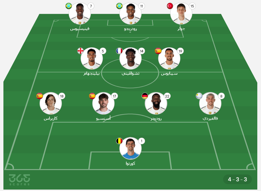 - خط الهجوم: فينيسيوس جونيور، رودريجو جوس، أردا جولر.