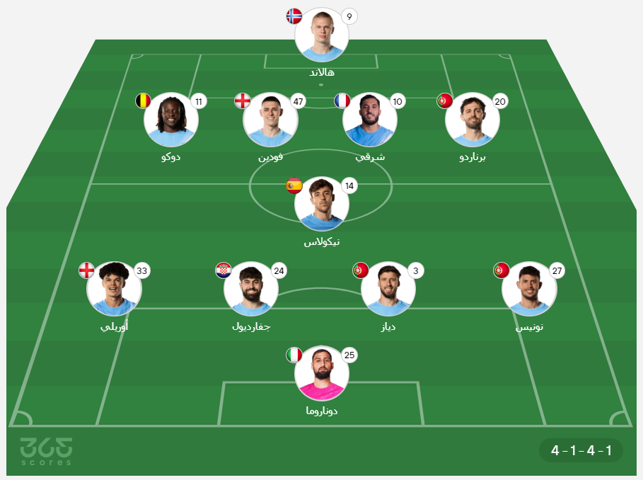 تشكيل مانشستر سيتي ضد ريال مدريد