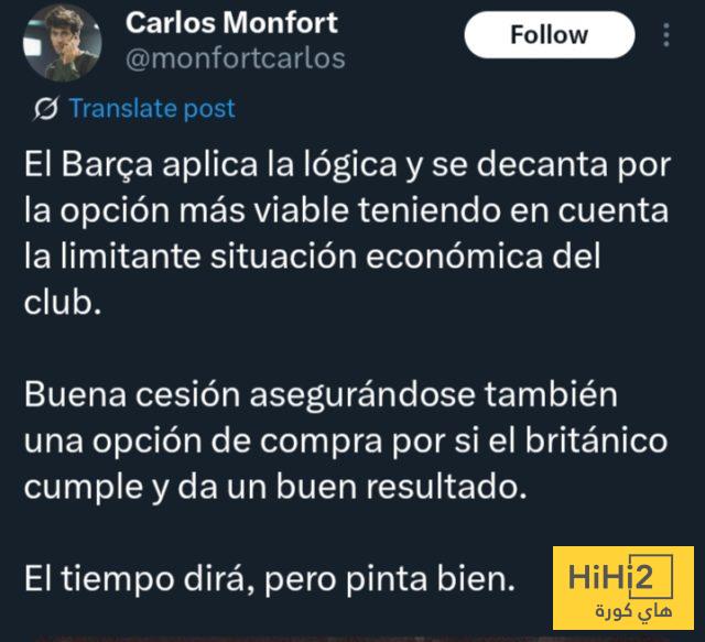 وكتب مونفورت: “برشلونة يتصرف بمنطق ويختار الخيار الأكثر واقعية بالنظر إلى الوضع الاقتصادي الصعب الذي يمر به النادي”.