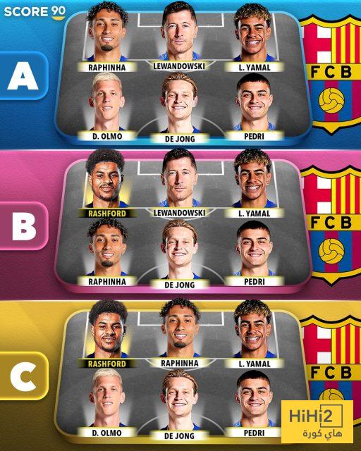 أما في حال اشراك البرازيلي كراس حربة او كلاعب وسط مع دي يونغ و بيدري فسيضمن لراشفورد مكانا في التشكيلة الاساسية للفريق كجناح .