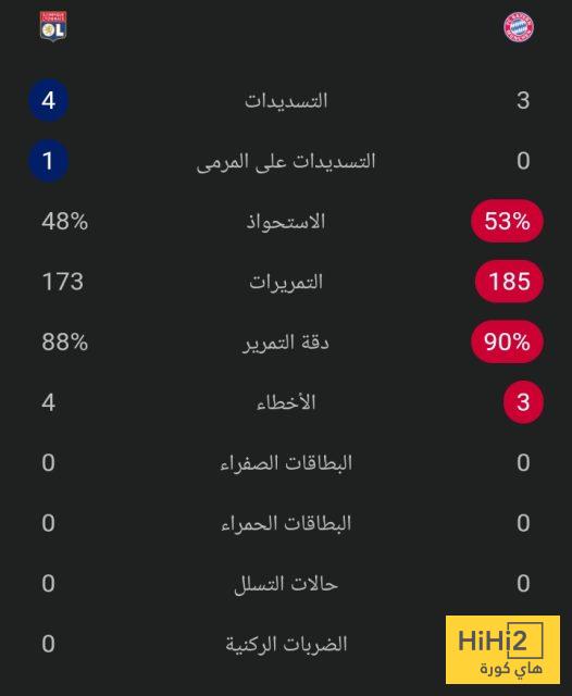 إحصائيات الشوط الأول: