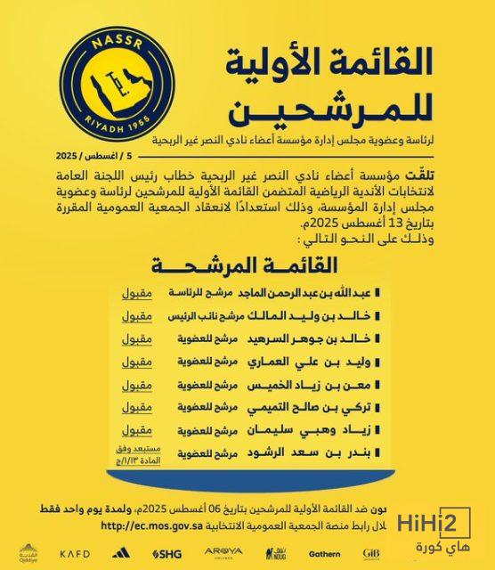 القائمة الأولية المرشحة لرئاسة وعضوية نادي النصر