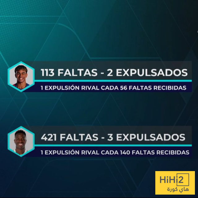 لامين يامال : 113 خطأ ارتكب عليه – الخصم تلقى طردين – بمعدل طرد واحد لكل 56 خطأ يرتكب عليه.