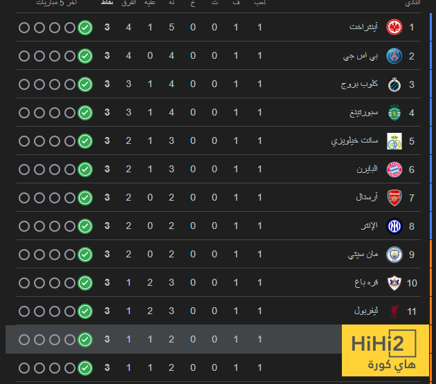 ترتيب دوري ابطال اوروبا بعد انتهاء الجولة الاولى