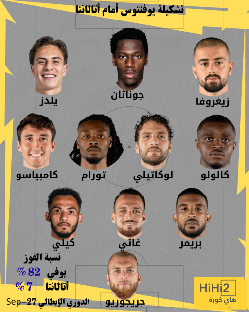 نسبة فوز يوفنتوس 52%، ونسبة فوز أتالانتا 22%، ونسبة التعادل 26%.