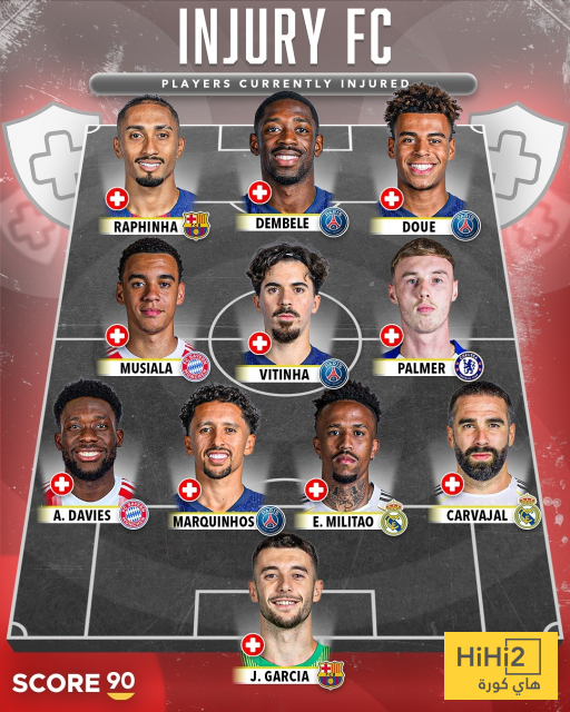 هاي كورة- تحت اسم اف سي المصابين أي نادي اللاعبين المصابين نشر موقع سكور 90 ثلاث تشكيلات مثالية من اللاعبين المصابين حاليا تزامنا مع مباريات الجولة الثانية من دوري ابطال اوروبا .