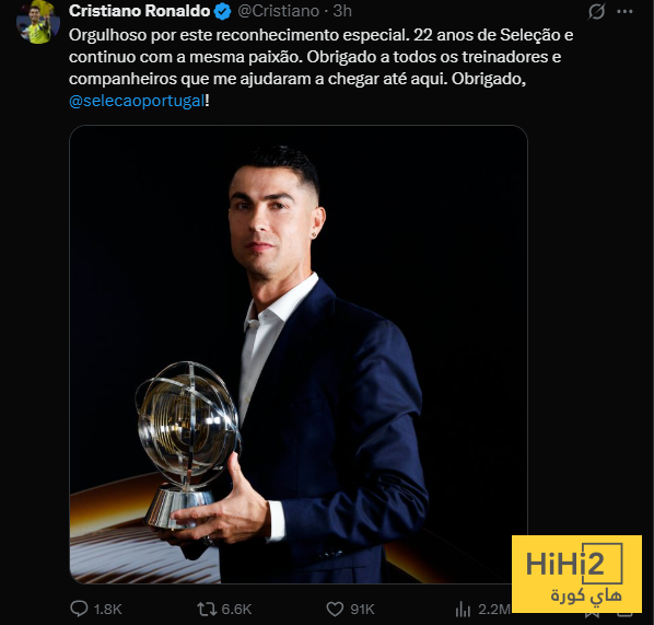 كريسيانو رونالدو غرد عبر حسابه الرسمي على اكس بعد تتويجه بالجائزة قائلا: